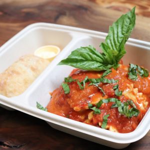 Butternut Squash Ravioli served with a tomato basil sauce and roll. Packed individually in a recyclable container that can be heated in the microwave.$15.95 each -
