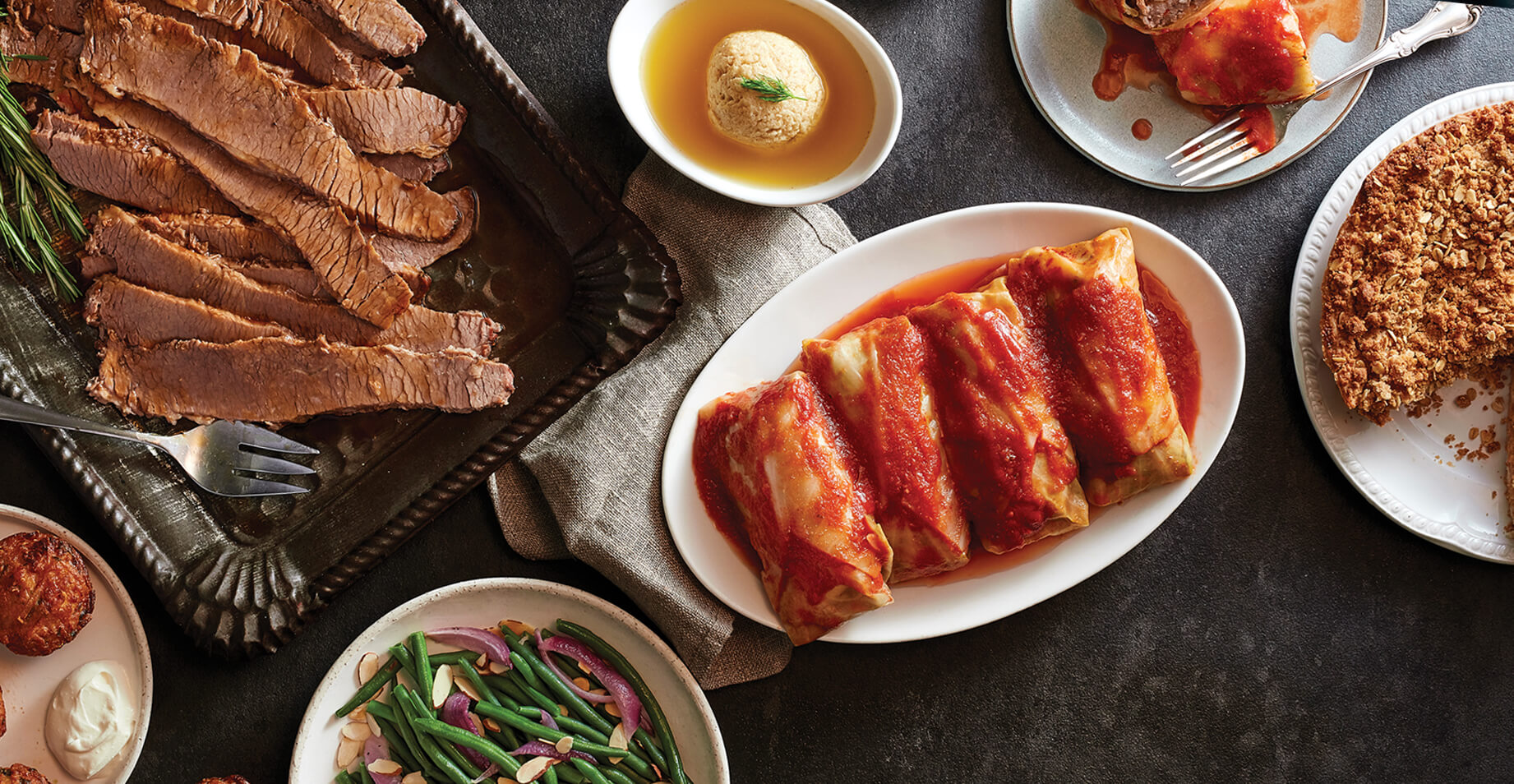 Celebrate. Honour. Remember. Entertain with perfection and enjoy a freshly prepared Chanukah dinner – that you won’t have to cook. We got this. Includes: matzo ball soup, roast beef, mini latkes, green beans and onions and apple pie. Delivered cold; ready to heat