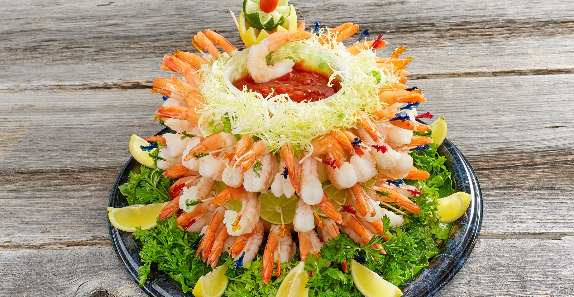 A magnificent array of 75 succulent black tiger shrimp served with our tangy cocktail sauce. Choose from steamed, basil pesto, Cajun or lemon dill flavours.